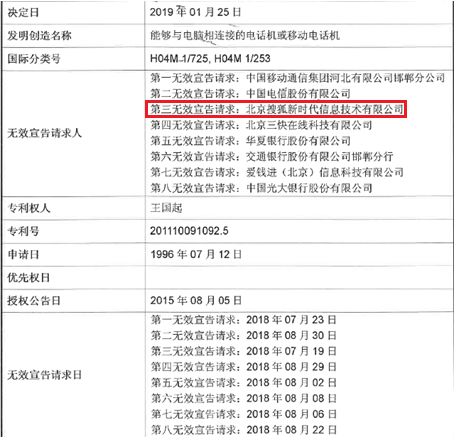 集佳成功无效王国起专利,还移动通信、互联网及金融行业以宁静