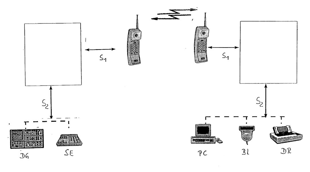 而证据3-1公开了整体的应用场景(如下图所示),在该应用场景中无线电设备和无线电设备连接,并且无线电设备和个人计算机连接,相当于移动电话机和电脑无线传输信息、移动电话机之间无线传输信息。虽然证据3-1未公开电脑和移动电话机之间、移动电话机之间传输的是汉字,但是证据3-2公开了手机和手机之间传输汉字信息,而且本领域技术人员在面临电脑和移动电话机无线传输汉字信息的问题时,将证据3-2公开的能够传输汉字的移动电话机结合到证据3-1中,是显而易见的。因此,权利要求1相对于证据3-1、证据3-2和公知常识的结合不具有创造性。